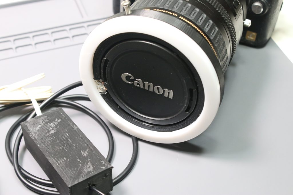 キャノンのレンズにフィットするので同じように作れば接写用照明にも使えそう!