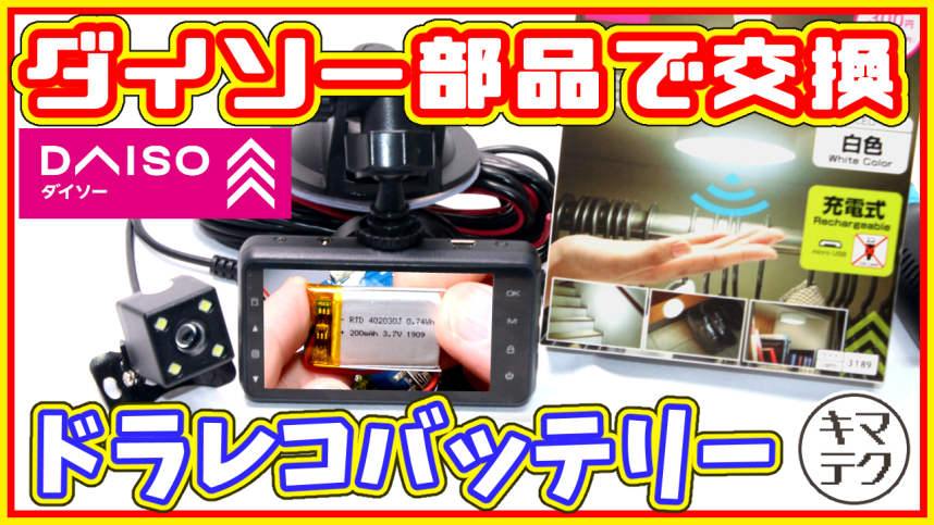 バッテリー劣化が理由のジャンクで購入したドライブレコーダーのバッテリー交換をダイソー部品流用で交換できないか試してみた動画を公開しました。